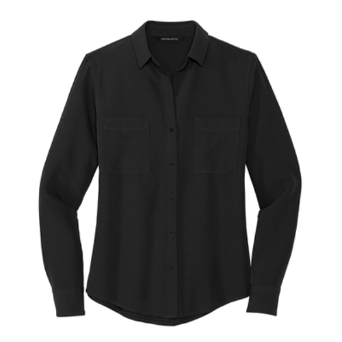 Taking a more refined approach to tailoring, this chic blouse offers movement and ease in a fine crepe fabric and soft fit. Adjustable button cuffs and a trend-right dropped hem add style and versatility for day to night wear.